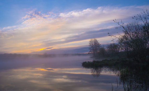 Весенние туманы. Рассвет на озере.