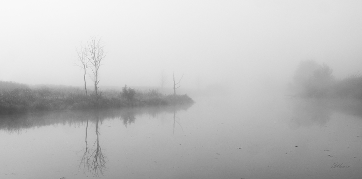 Последний день лета. Сильный туман на озере Омут.