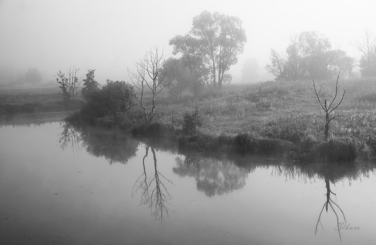 Туманное утро на озере Омут.