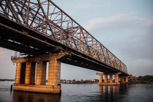 Протяженность моста составляет 602 м, ширина — 11,5 м. Мост состоит из двух частей — автомобильной и однопутной железнодорожной. Конструкция моста — цельнометаллическая, ферменная. Обе части моста стоят на общих опорах.