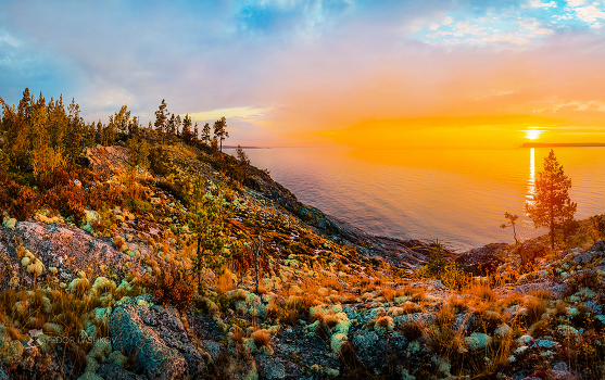 Осенний рассвет на острове Ладожского озера.