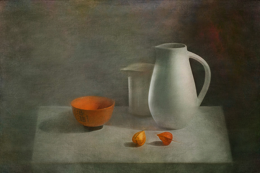 натюрморт с изменённой перспективой и накладной текстурой