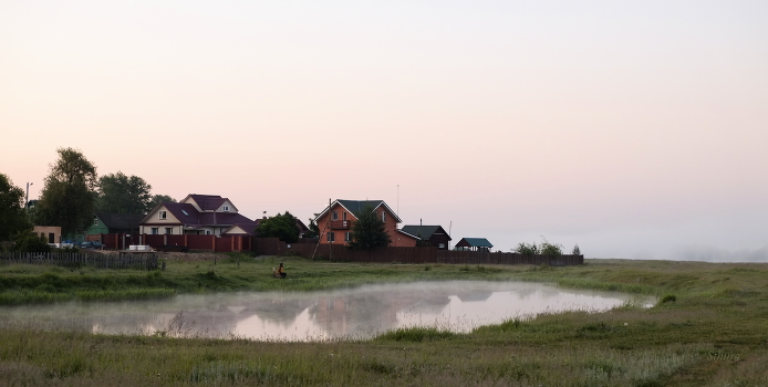 Рыбак на пруд у посёлка.