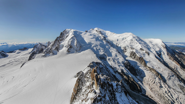 Самый высокий пик Альп, Монблан, 4810 метров. Снято с пика Эгюй ди Миди, 3842 метра.