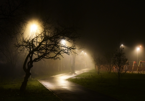"Густой туман на горд опустился, Укутав в тайну старые дома ... Сверкнул фонарь и в тайне заблудился, Оставив на потом свои дела ..." Е.Есаулова
