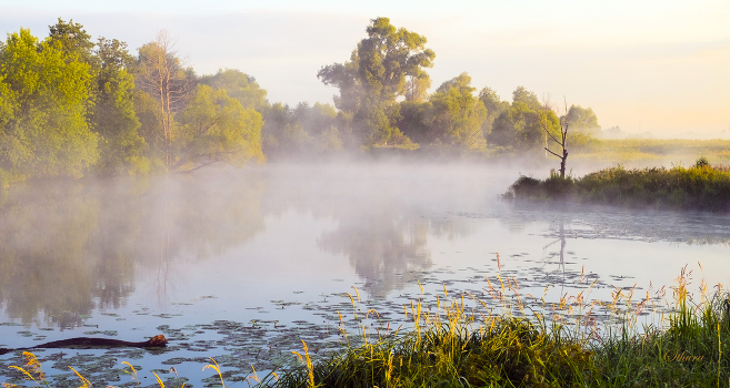 Летние, туманные рассветы на озере Омут, юго-восток Московской области.