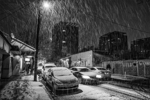 вечерние улицы с первым снегом