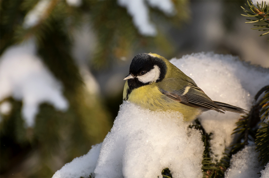 синица большая,.. почти в сугробе..