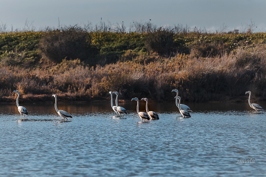 фламинго на озере