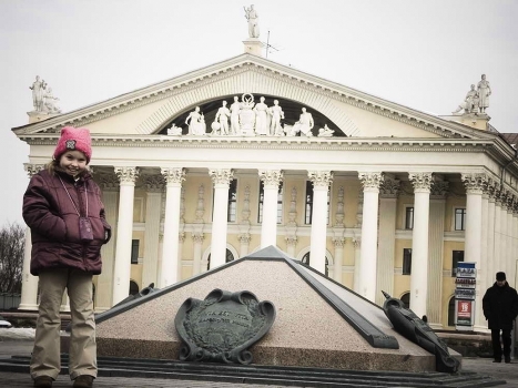 девочка увидев фотопарат бросила бабушку и пошла в кадр и нагло стала улыбаться в объектив...смешная...