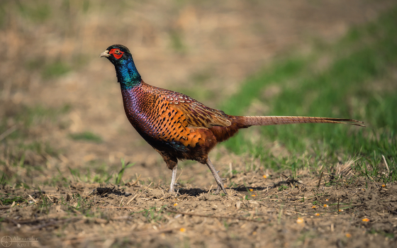 Фазан. Окраины Краснодара. Три часа выжидания с рассвета, пара горстей зерен кукурузы в качестве прикорма и этот парень мой...