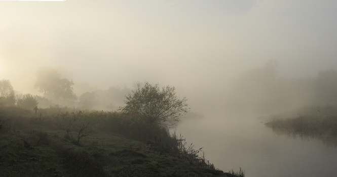утро,туман,река,человек