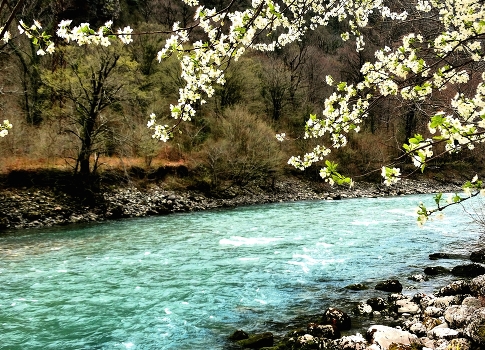 На берегах Бзыби в Абхазии зацвела вишня