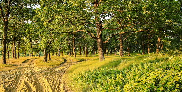 Рассвет в дубовой роще.