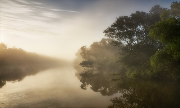 Свесились туманы над рекой.
