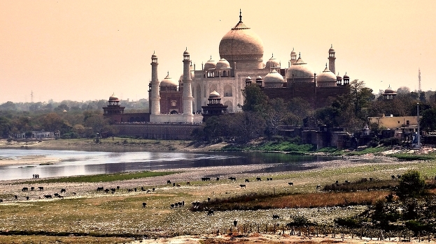 Вид из крепости Агра (расстояние 3км) на Тадж-Махал, на берегу реки Джамна, притока священной реки Ганг.