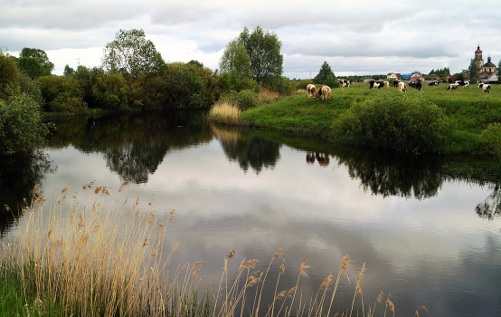 Выпас на лугу у речки