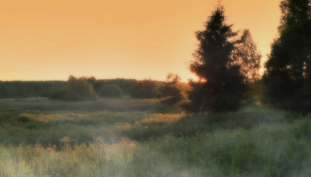 Вечерний июньский туман окутывает природу