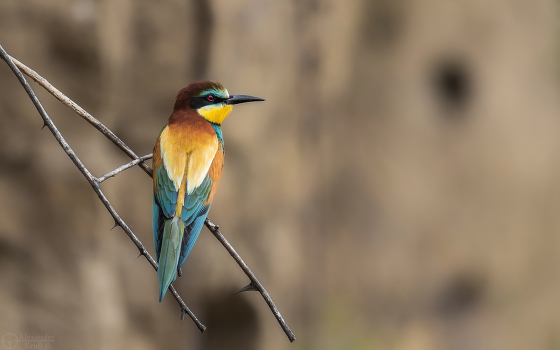 Золотистая щурка (Пчелоедка) у гнезда в обрывистом берегу над р. Кубань.
