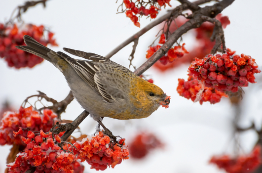 самка.. вытаскивает семена из ягод..