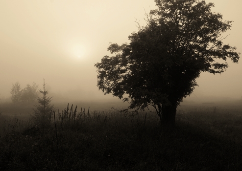 " Солнце, не похожее на солнце - словно лунный диск висит в тумане..."