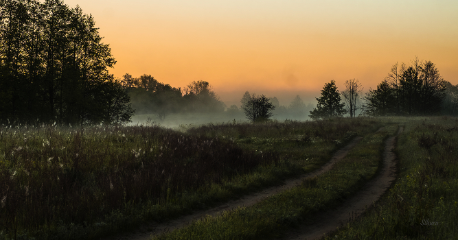 Утренний пейзаж у озера Исток. Юго-восток Московской области близ посёлка Белоомут. Мещера.