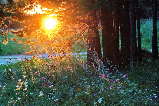 На закате.