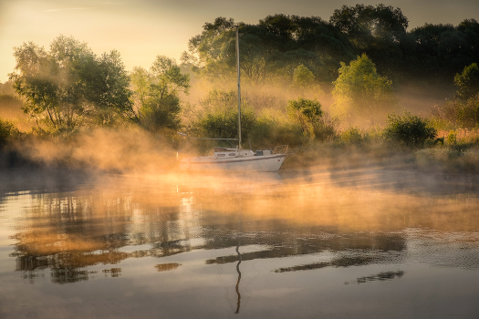 Лодка в туманных лучах