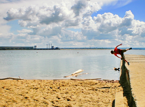 спорт на пляже, молодежь, прыжки