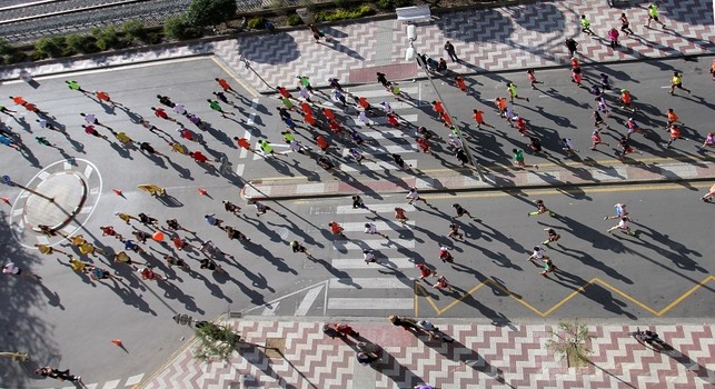 ...бежать в цветных футболках :)