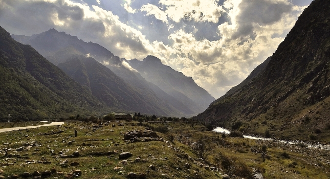 В туманной дымке горы