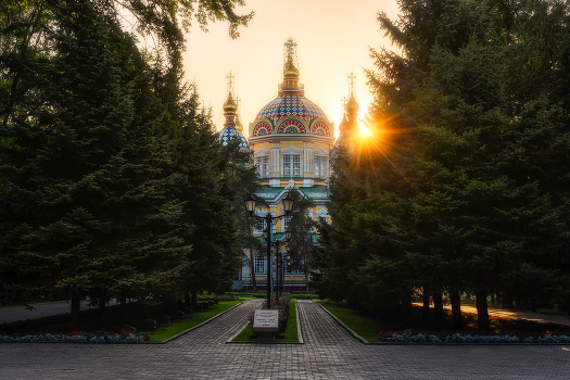 Ранний вечер в парке 28 Панфиловцев - гвардейцев. Казахстан, г. Алматы.