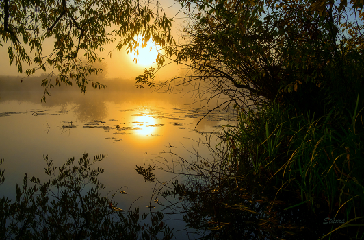 Озеро Студёное на рассвете. Юго-восток Московской области, у Оки. Мещера.