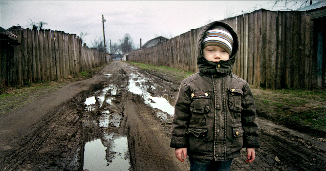 портрет с дорогой и лужами