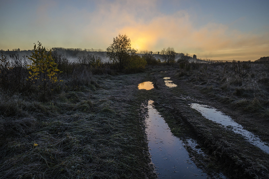 Дорога после ночного дождя. Рассвет