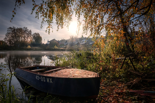 Это был один из последних осенних солнечных дней в Плесе. Тихое утро. Желтая листва шурша облетает с берез. В воздухе витает знакомый запах печного дыма. Городок просыпается.