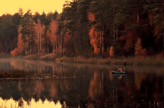 Осень, вечер, рыбак