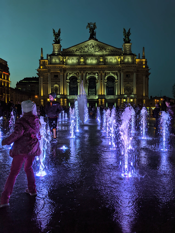 Фонтан на площади перед Оперным театром – метеозависимый. Он автоматически выключается,