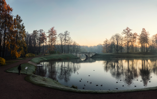 Начало ноября. Тихое туманное утро. Гатчина. Дворцовый парк.