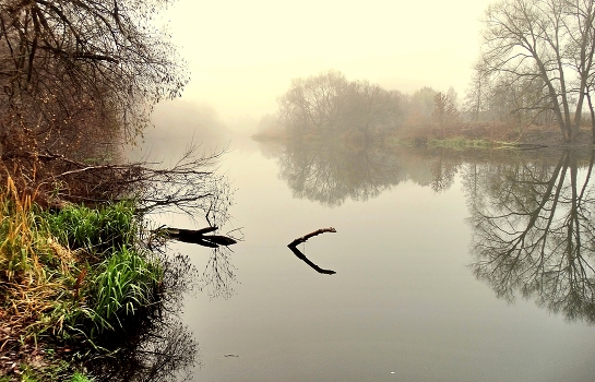 Ноябрьские туман на реке