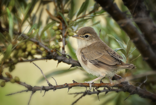 птенец северной бормотушки в облепихе.