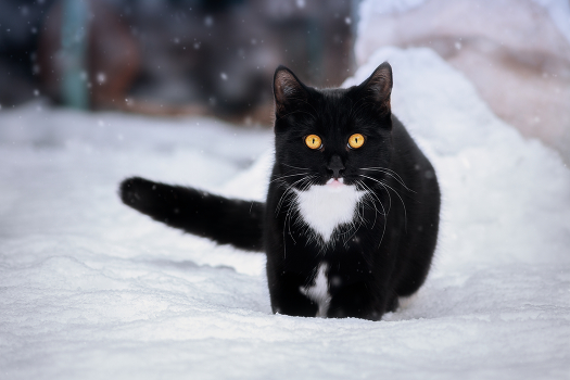 Первый снег в жизни Уголька.