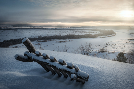 Глубокий снег, мороз и ветер выгладили вершину горы Мыщелка открывая великолепную панораму на долину пермской реки Сылва, скованную ледяным панцирем до весны.