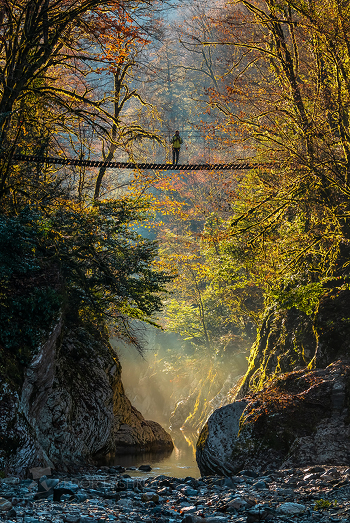 Мост через ущелье реки Хоста. Эко тропа в национальном парке Тисо-самшитовая роща. Западный Кавказ. Краснодарский край, Сочи. Начало декабря, 2020. Из фотопроекта «Кавказ без границ».