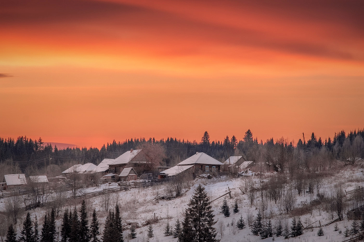 Невероятно завораживающий и драматический рассвет над поселком Кусье-Александровский.