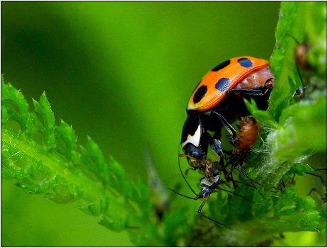 Божья коровка семиточечная - Coccinella septempunctata.Часто, мы просто проходим мимо не замечая того, что происходит у нас под ногами.
