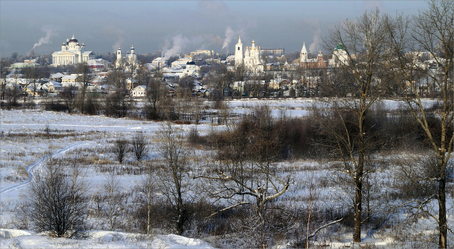 Морозный день. Дымы над городом. Вид с юго-восточной окраины.