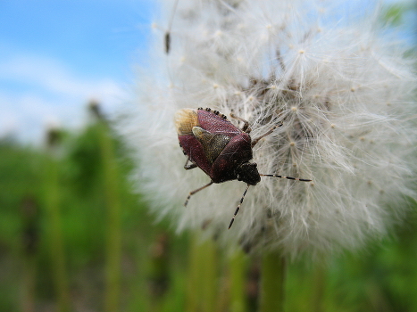 Клоп щитник на распушившемся одуванчике.