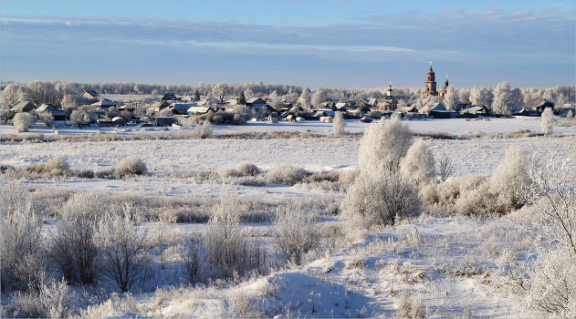 Вид на село Заречное. Февраль. Морозный день.