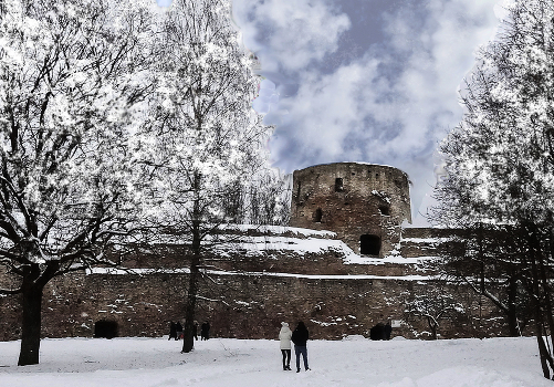 Фрагмент крепостной стены в Изборске